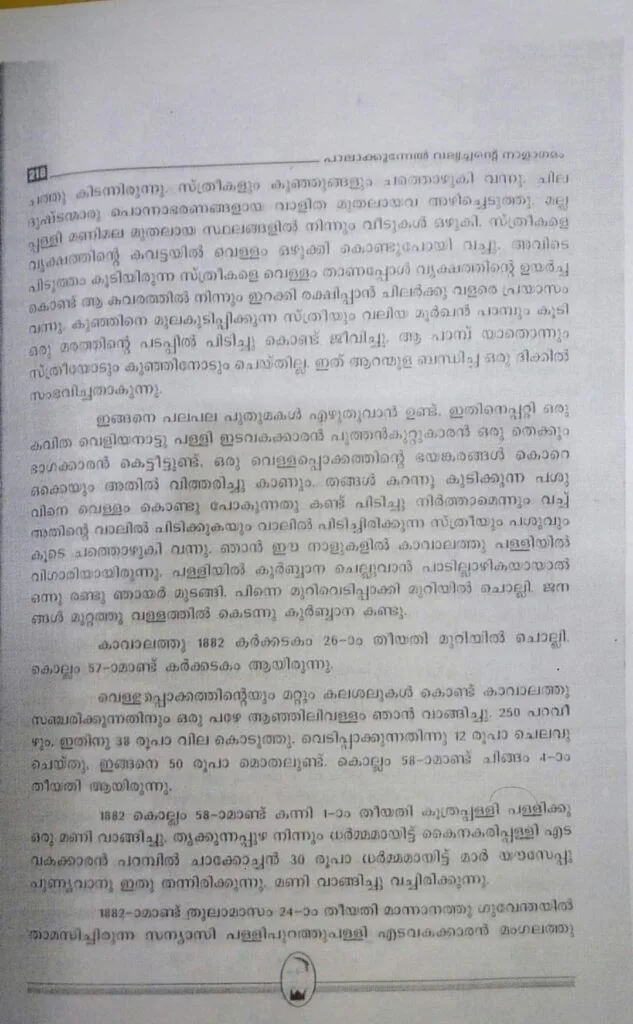 പാലാക്കുന്നേൽ വല്യച്ചന്റെ നാളാഗമം ( diary) എന്ന പുസ്തകത്തിൽ രേഖപ്പെടുത്തി സൂക്ഷിച്ചിട്ടുണ്ട്. താൻ ജീവിച്ചിരുന്ന കാലഘട്ടത്തിൻ്റെ അമൂല്യമായ ചരിത്രരേഖയാണ് നാളാഗമം.